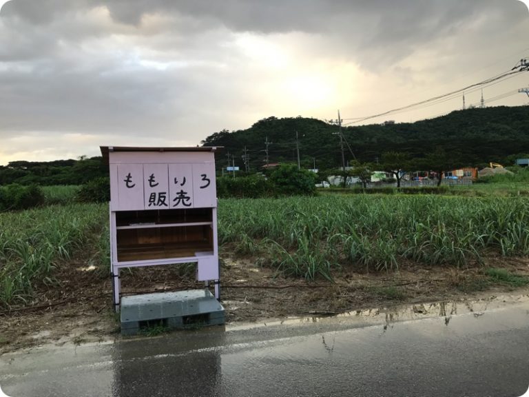 バンナ公園南口、手前の交差点近くの無人販売、ももいろ販売。