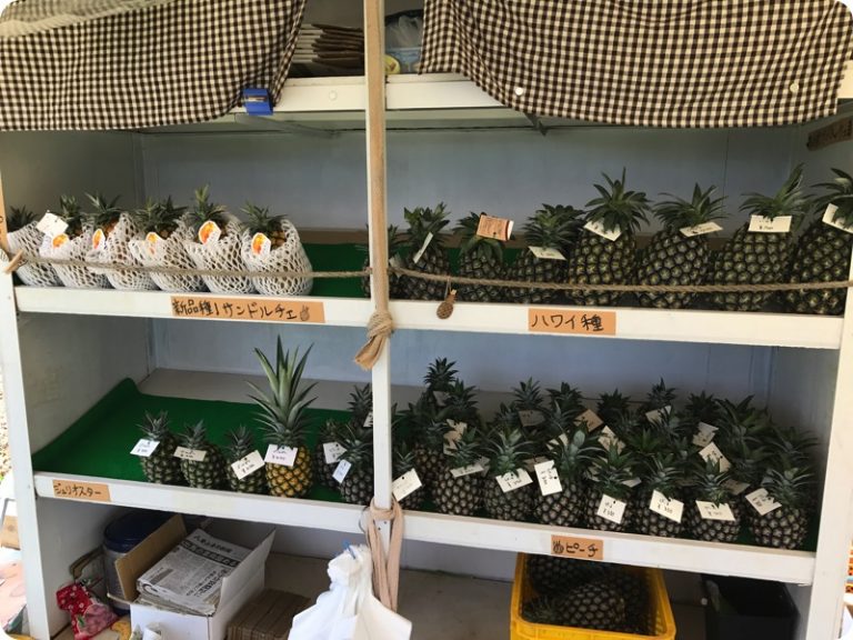 名蔵の交差点から「石垣やいま村」方面に向かうと、右手にバイナップルの路上販売があります。