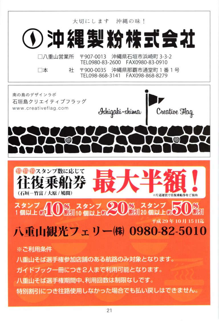 ちなみに21ページに記載されていますが、20店以上まわってから離島の店に行けば、往復乗船券が50%オフになるようですよ。