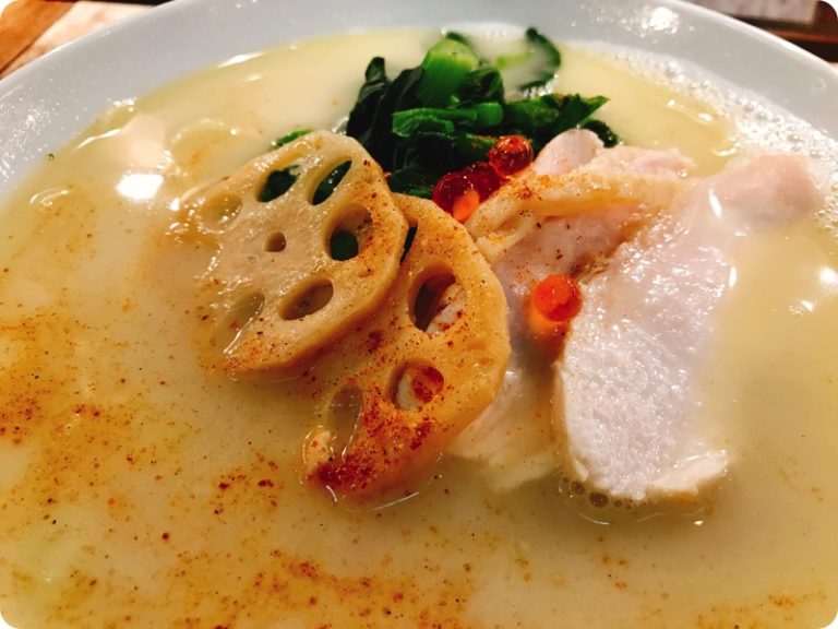 細麺でスープが白いので博多ラーメンっぽいですが、鶏のスープなんですね。