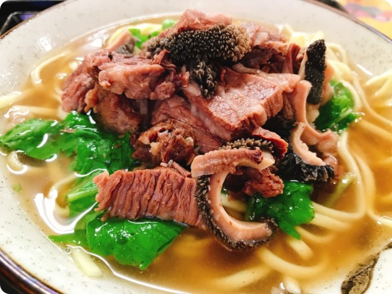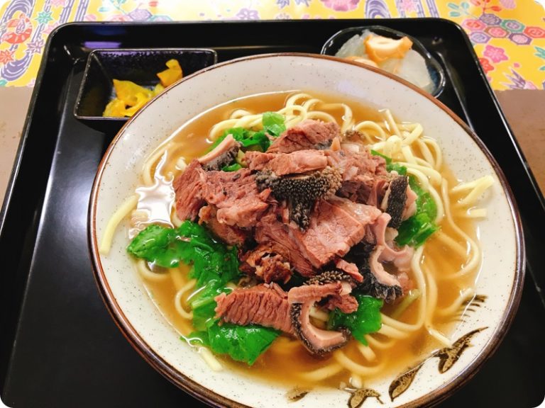 牛のダシ骨をたくさん入れているのでダシもおいしく肉もやわらかくてまた食べたくなる牛そばです。