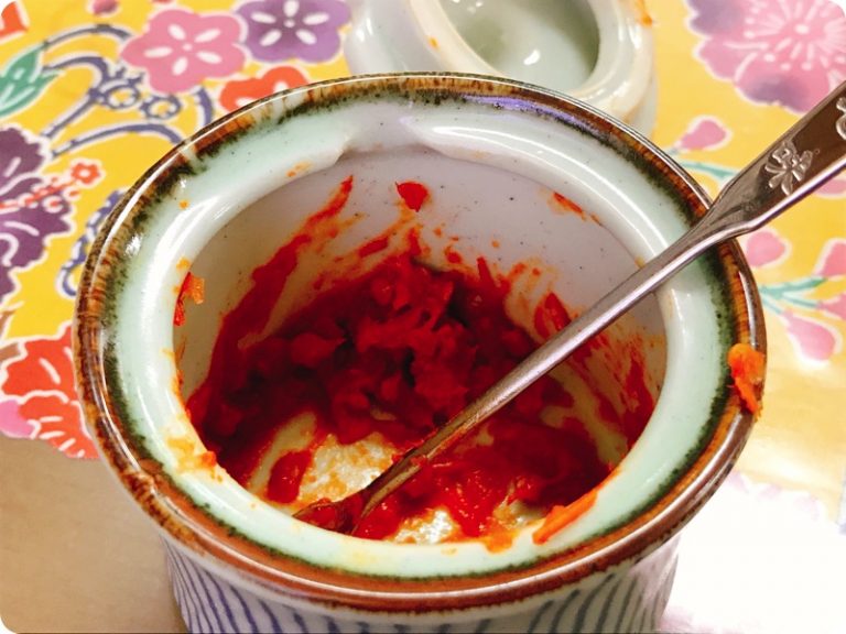 途中からこのカラシ(与那国島の練りクースーというらしい)を入れたら食べ終わる頃には汗が噴き出していました。