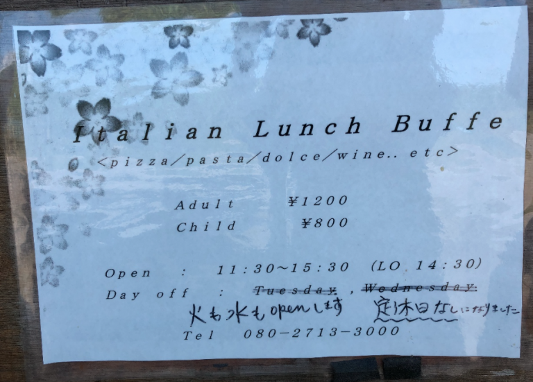 営業時間 1:30〜15:00 14:30にラストオーダーで食事は下げられますが、ドリンク、デザートはそのまま