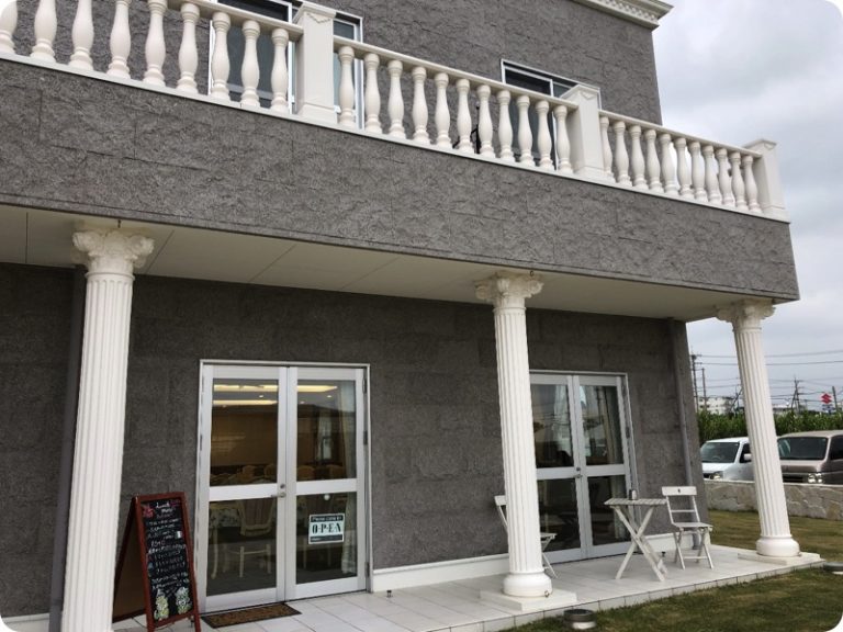すぐ右手に建物。石垣ではみたことがない意匠。プールも見えましたし、宿泊施設も兼ねているようです。