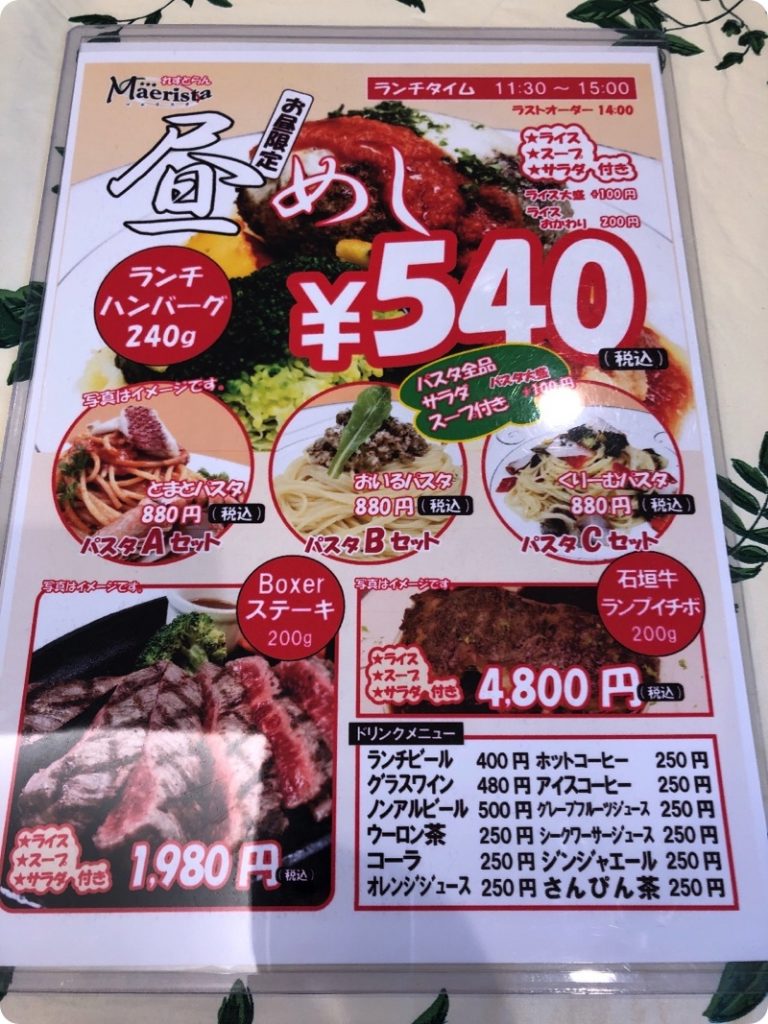 540円!!  しかも内税! イタリアンな感じなのに「昼めし」という表現が面白い。