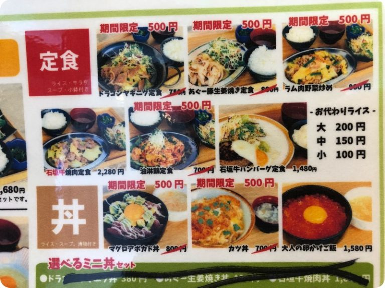 通常750円や800円の定食が500円で食べられます。あと2日、8日までだそうです。