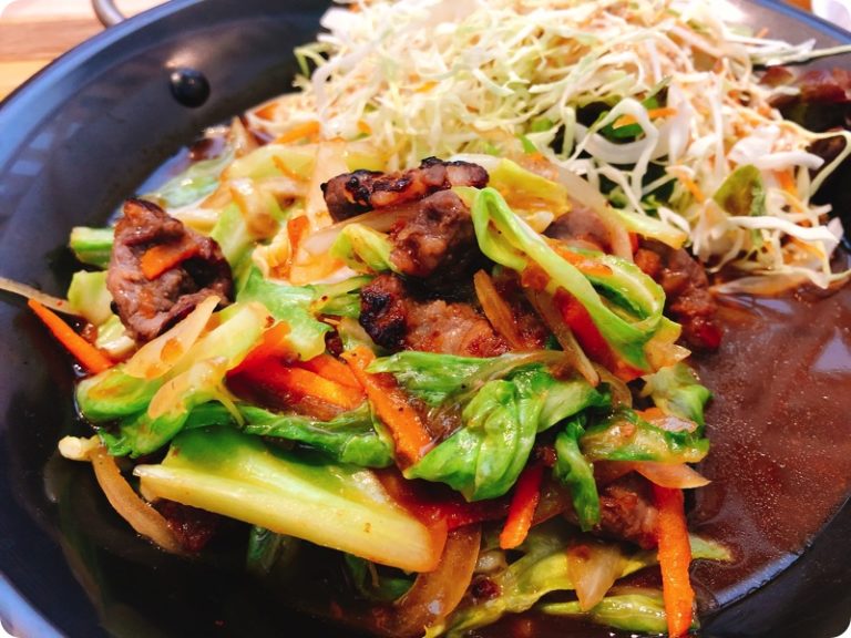 自分はドラゴンヤキニク定食を注文。お肉ごろごろでおいしかったです。