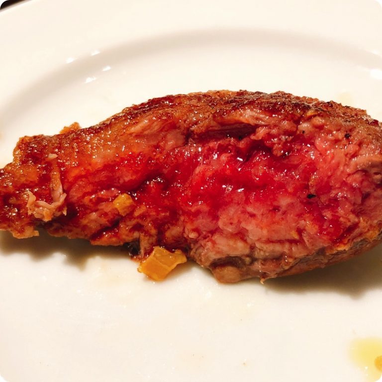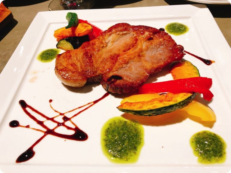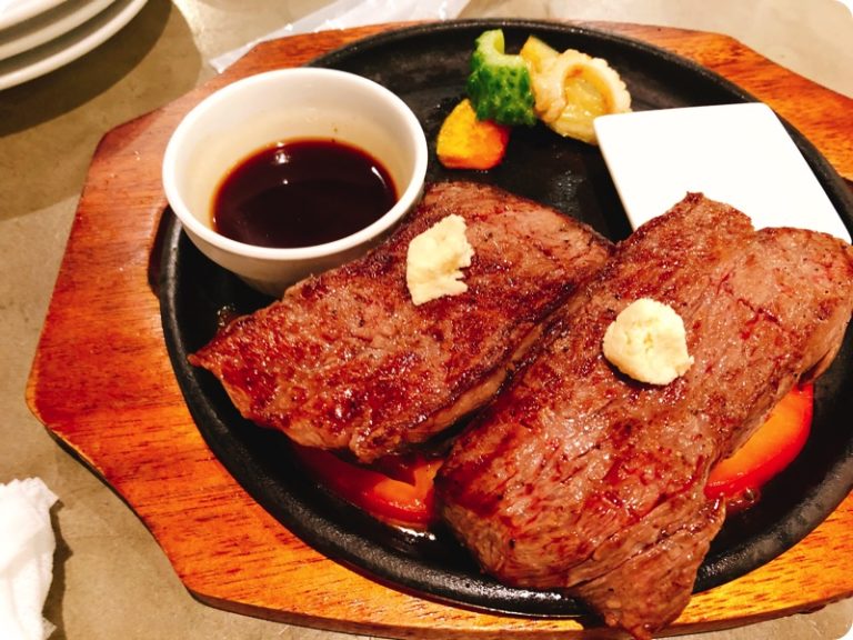 石垣牛のステーキ。一頭買いしていて、提供できる部位はその日によってかわります。