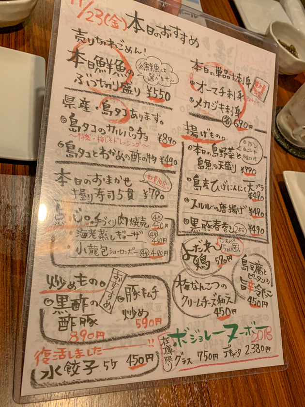 本日のおすすめメニューはこちら。
