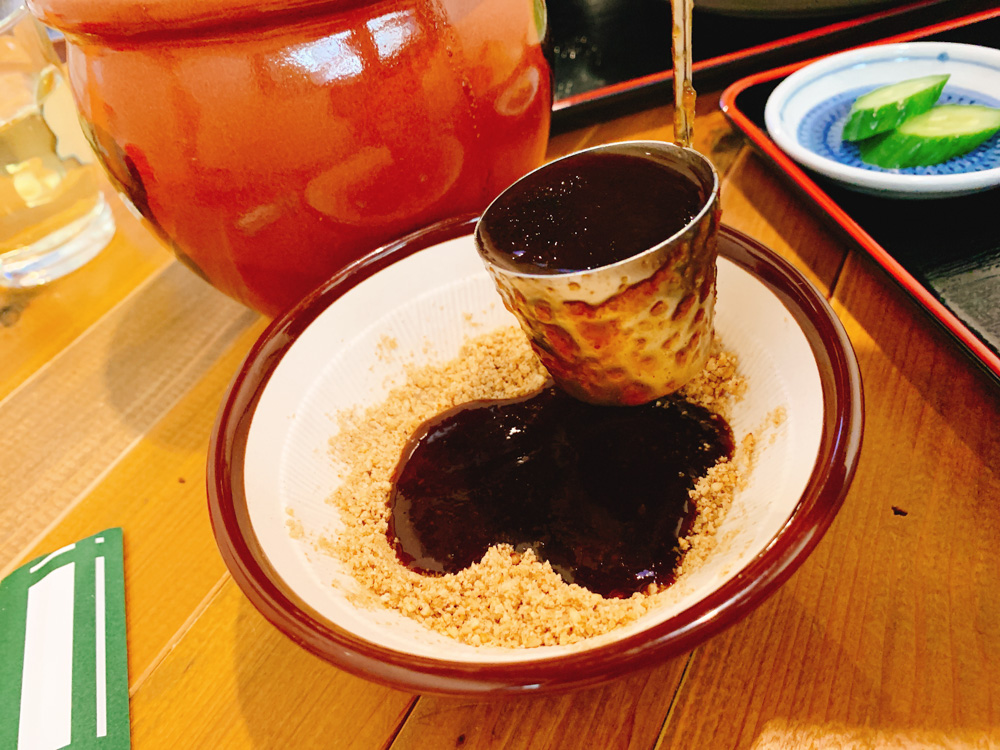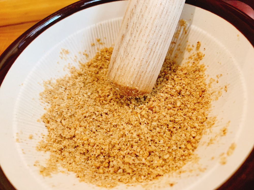 提供されるまでごまをすって待ちます。