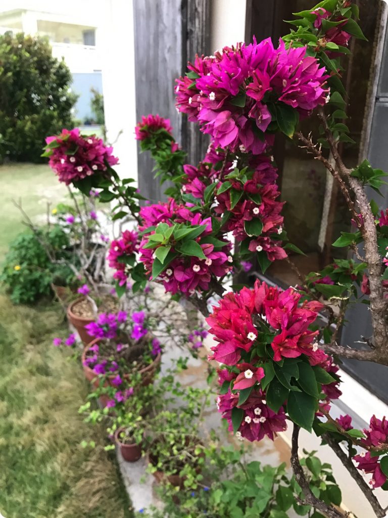 庭先にはブーゲンビレアが多い。しかもみたことがない種類が多い。